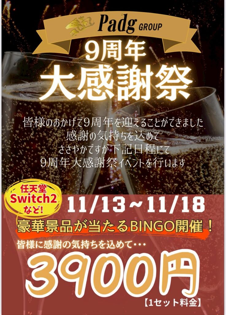 皆様お待ちかね! 豪華景品が当たる✨️9周年イベント✨️が間もな… 続きを読む: 煌楽の9周年はSwitchが当たってお得に遊べる!! - 京都のキャバクラでSwitch2が当たる⁉️